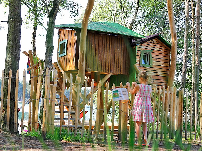 De boomhut is klein, maar heel gezellig! In de boomhut is voor kasten geen plaats, maar er werden wel enkele legplanken voorzien voor je kledij en ander materiaal. De boomhut staat aan de rand van het water. Op het terras geniet je van het prachtige zicht over de uitgestrekte vijver!